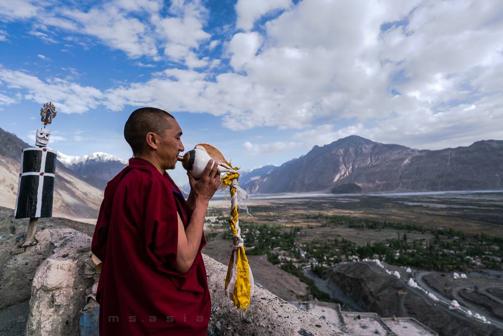 Early morning departure (5:00 AM) to Thiksey Monastery to witness the monks’ morning prayers. Tea will be served at the monastery. Return to the hotel for breakfast. After breakfast, rest for an hour before visiting Stakna Monastery. Enjoy an indoor portrait session in a heritage home. At sunset, photograph from a ridge with Stakna Monastery and the Indus River as a backdrop. Return to Leh and prepare for the next day’s departure to Nubra Valley. Overnight in Leh.