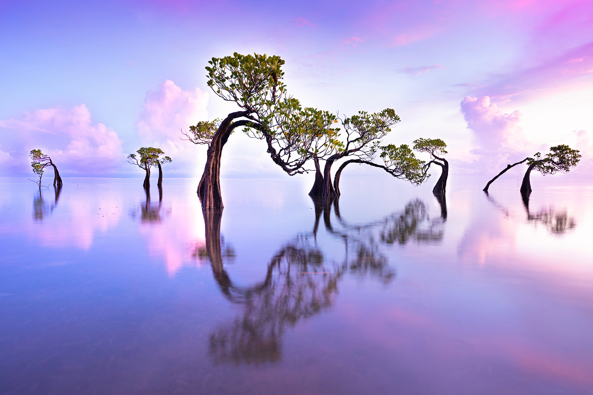 Day 7 (Mar 2): Ancient Weaving & Dancing Trees We delve into the artistry of Sumba’s heritage. Morning: Prailiu Village. We witness the meticulous process of Ikat weaving, where intricate patterns are created using natural dyes and totem carvings that tell the ancestral stories of the village. Sunset: Walakiri Beach. We focus on long exposures of the famous “Dancing Trees.” These unique mangroves grow in the tidal zone, their twisted branches creating surreal, whimsical silhouettes against the colorful evening sky. Overnight: Waingapu.